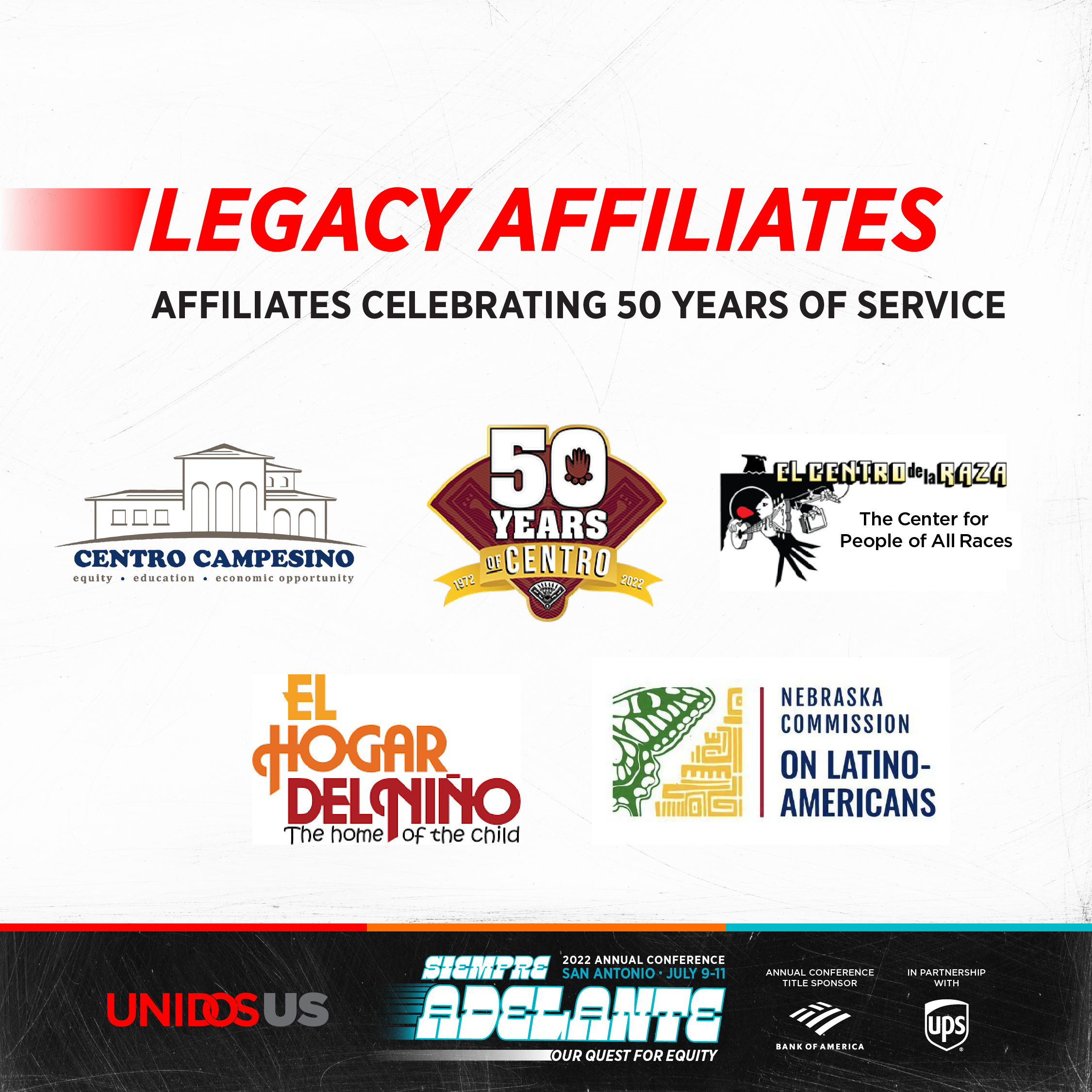 This year we also celebrate the Affiliates below for their work and their legacy. The UnidosUS Affiliate Network is at the heart of our work and a source of opportunity and resources to the communities they serve every day. It is our pleasure to recognize their excellence and endless commitment to Latinos across the country. Stay tuned to our social networks to find out the National Affiliate of the Year awardee.